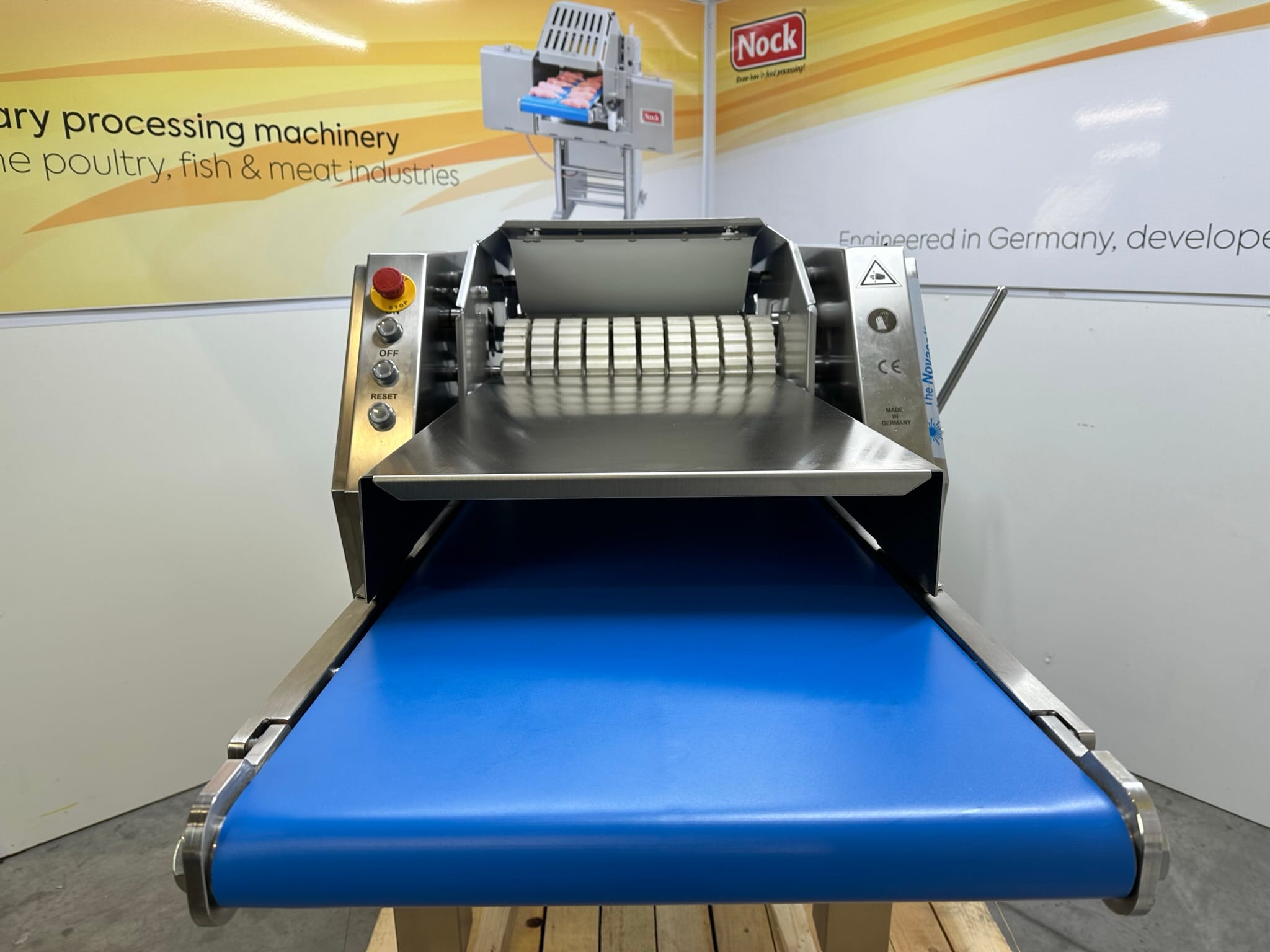 The Nock Automatic Return Skinners are designed for precise and efficient membrane trim removal. Built to handle flat muscle groups and larger cuts such as silverside, topside, and LMCs, this range is engineered for seamless integration into your existing processing line. With a focus on efficiency and safety, it eliminates the need for open blades, reducing health risks and eliminating the requirement for specific PPE.