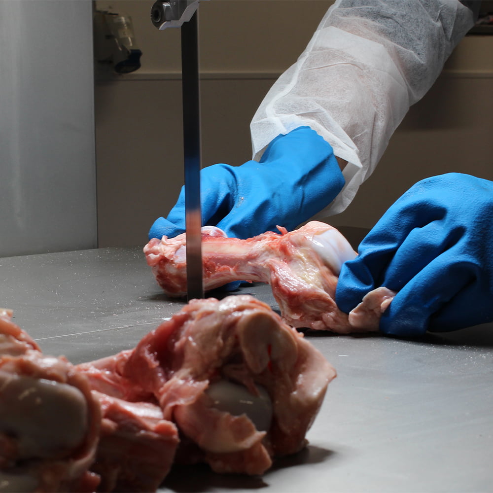 The Guardian Bandsaw has been designed from the ground up with a 3D Vision Technology™ safety system, reducing serious injuries in the meat processing industry. Whereas traditional contact sensing only activates after the operator makes contact, the Guardian anticipates injuries and stops them in their tracks. Four cameras constantly monitor the blade for a specific coloured glove, creating a virtual ‘safety zone’. A soon as a glove is detected in the zone, the bandsaw stops before the operator’s hand comes into contact.
