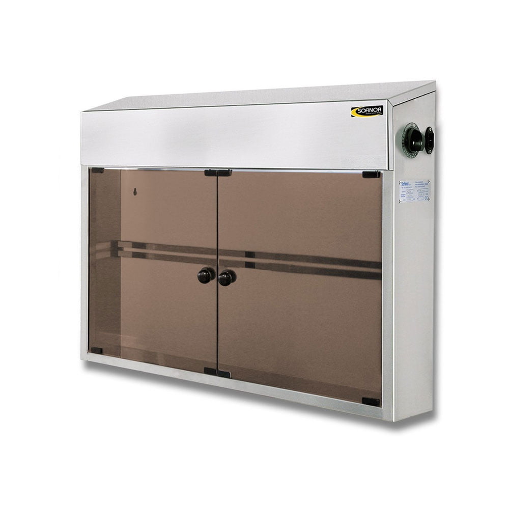 The Sofinor Knife Cabinet is an effective way to sterilise your small knives and utensils. Made of stainless steel, the cabinet includes a 120 minute timer and has intregrated safety features such as auto cut out when the door is opened. With an inclined top surface helping to comply with hygiene standards